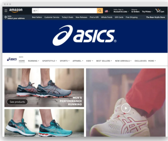 想要购买Asics跑鞋的顾客在亚马逊上搜索“asics running shoes”会有不同的体验。这种体验更像是去Asics官网。因为品牌商店就像品牌的网站一样,没有宣传竞争品牌的广告。