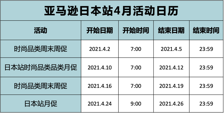 亚马逊日本站4月时尚品类活动日历来了,快收藏!