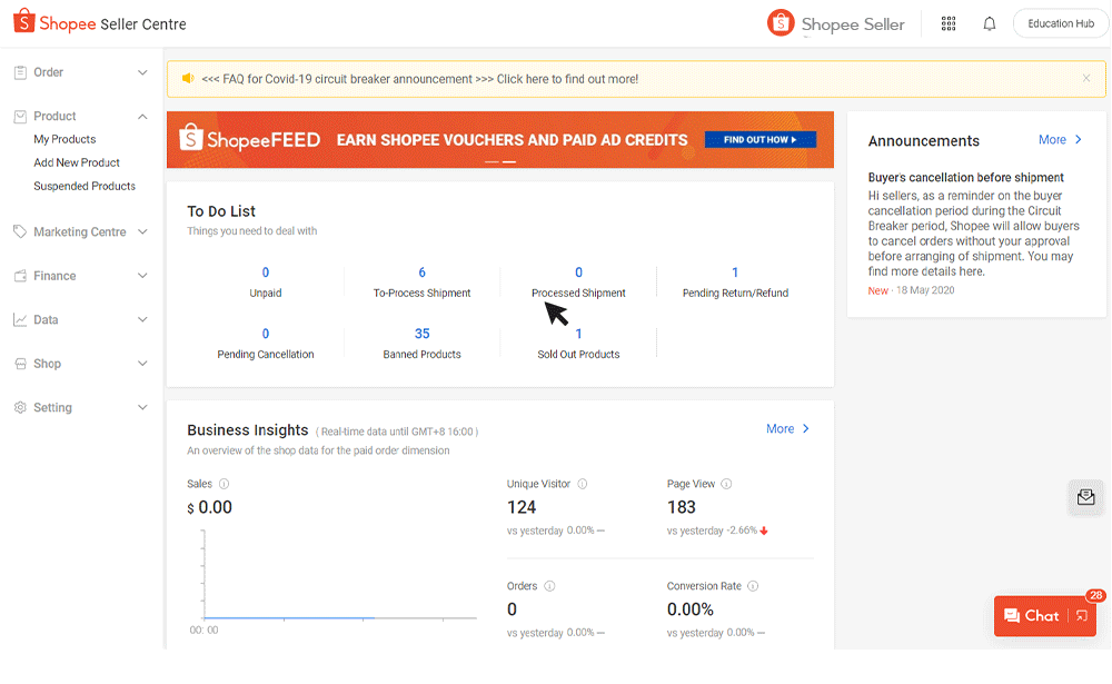 第一步:从卖家中心左侧目录栏进入「我的商品(My Products)」页面。