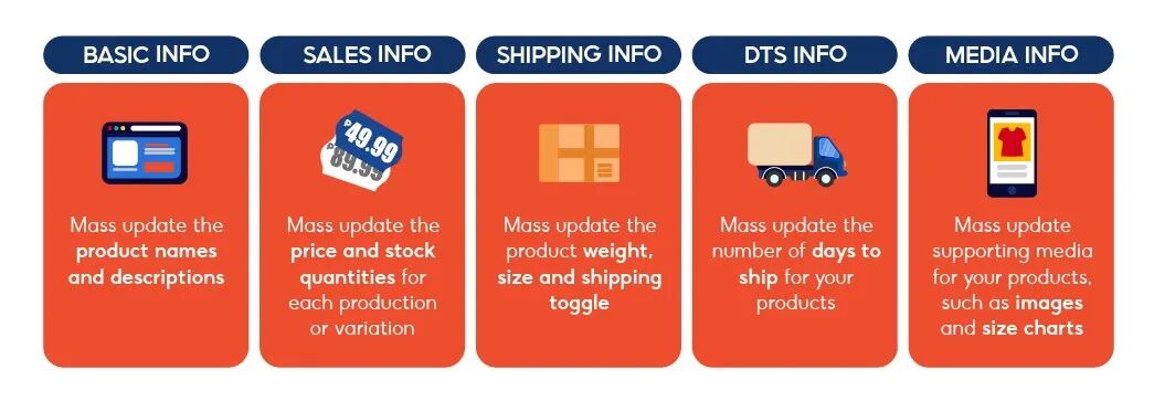 除了使用一般商品编辑工具逐一更新商品信息外,大家还可以利用「批量更新」功能大批次编辑商品信息。