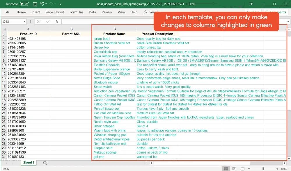 在每个批量上传模板内,您只能对绿*域进行更改。