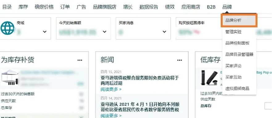 开始使用:卖家平台 -> 品牌 -> 品牌分析