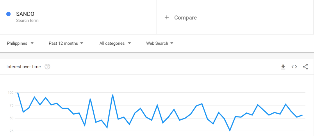 菲律宾天气炎热,便宜又舒服的背心是本地男士最喜欢的单品之一。背心在菲语里叫「Sando」,从谷歌趋势来看,该关键字的热度常年来一直居高不下。