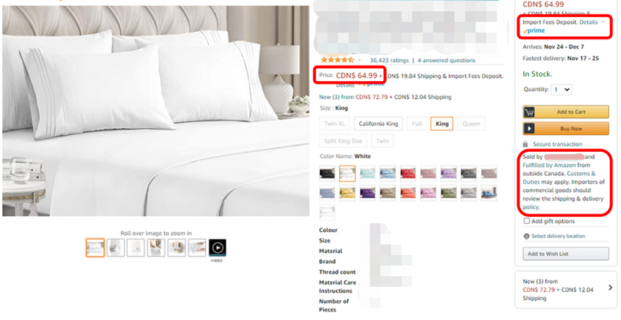 在“搜索结果页”和“商品详情页”中,买家会看到这些商品属于进口商品,及与每件商品相关的进口关税和费用。