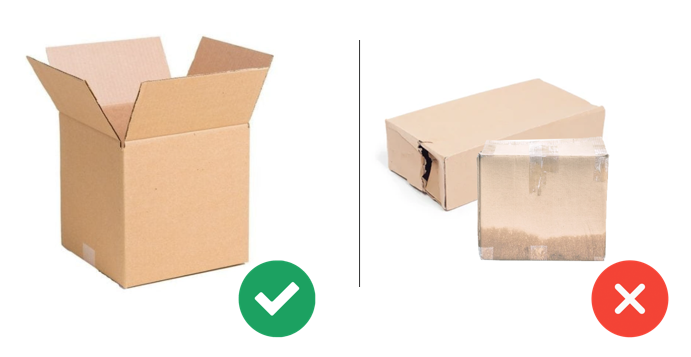 ✅ 使用自有包装箱时,切勿选择潮湿、易损或脆弱的纸箱。坚固耐用的瓦楞纸箱永远是最佳选择!