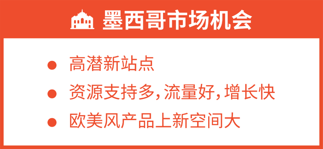 墨西哥市场增长非常快速,当地消费者对价格敏感度较高,在追求时尚潮流的同时也追求高性价比。墨西哥作为新兴市场,市场流量也正处于迅速上升的蓝海阶段。目前墨西哥市场需求更多欧美风产品,商机多多等待卖家挖掘。