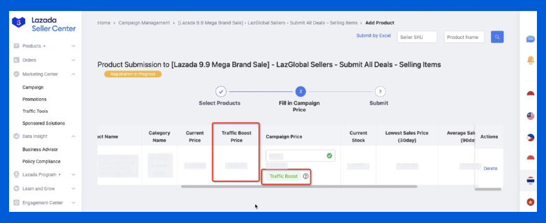 “战鼓雷鸣起,秣马厉兵正当时”。秋天已至,金秋九月正是收获之际。大促旺季号角即将吹响!揭开序幕的首个大促——9.9大促报名通道已经全部打开了!话不多说,大促重点干货全部已奉上。兵马未动,粮草先行,商家朋友们,9.9大促活动现均已开放报名啦,为了防止提报失误或错过报名时间,建议大家尽早报名,以免错失爆单良机哦!旺季大促的时候,面对高流量又该如何实现高转化的订单量?Lazada多样营销工具必能助您一臂之力!结合自身店铺和产品特点,组合运用Free Shipping(包邮)、Voucher(优惠券)、Flexi Combo、BMO、Flat Price等多个工具,使得营销效果最大化,大促销量翻倍提升指日可待!扫描下方二维码即可获得9.9大促工具玩法&报名汇总。不知道大促优惠逻辑?不懂如何搭配实现效益最大化?Lazada官方小二和品牌商家将提取自身经验,手把手详细盘点和教学如何布局大促运营,引爆9.9大促流量,直播排期将实时更新,欢迎大家扫码查看!Recommended Product(Lazada推荐商品)和流量加权价(Traffic Boost Price)是本次9.9大促全新上线的两大流量加权利器,旨在最大程度的降低商家报名活动时的运营难度,操作简单,但流量提升效果显著!商家报名活动时,可以在后台查询店铺商品是否属于“Recommended Product”,推荐商品提报活动即可获得额外流量和曝光加权!另外,9.9大促的“流量加权价”机制,能为商家提供基于智能算法的价格作为参考。最重要的是,在填写活动报名价格时,设置价格小于或等于流量加权价还可获得流量加权,最终为商家带来海量买家和销量!不同于商家优惠券的让利由商家全额承担,Lazada Bouns购物津贴是一个由平台和商家共同投资的用于Mega大促的跨店铺的营销工具。可以与其他优惠叠加,让商家剁手不停凑单满减,有效提高消费者客单价和店铺转化率。Lazada Bouns还能为您的店铺带来持续引流,Lazada将在站内及站外发放Bonus引流。在站内,显眼的Bonus图标将带来更多的曝光机会,在前台,消费者搜索时可以筛选只参加“Lazada Bouns”的商品,是9.9大促提高产品和店铺曝光率的重要渠道之一!再次建议各位商家,9.9大促活动报名入口已全部开启,商家朋友们记得预留时间积极关注并提报活动,提前做好大促规划和盘货,确定货品结构。预祝各位大促旺季旗开得胜,抓住爆单先机!