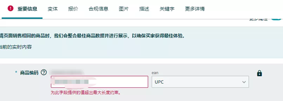 很多卖家表达,在编辑老链接时,页面上商品编码处出现了“值超出最大长度”等的红色警示提示,并且无法正常保存。亚马逊提示,会根据相关数据库检查商品编码的有效性,如果商品编码未在GS1中登记,其关联ASIN将被禁止显示,并可能会取消卖家的商品创建权限。