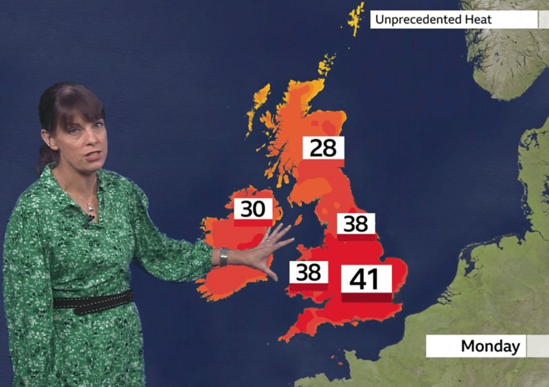 据天空新闻报道,今天英国的气温有可能达到41摄氏度,这将成为英国有史以来的最高温度记录。