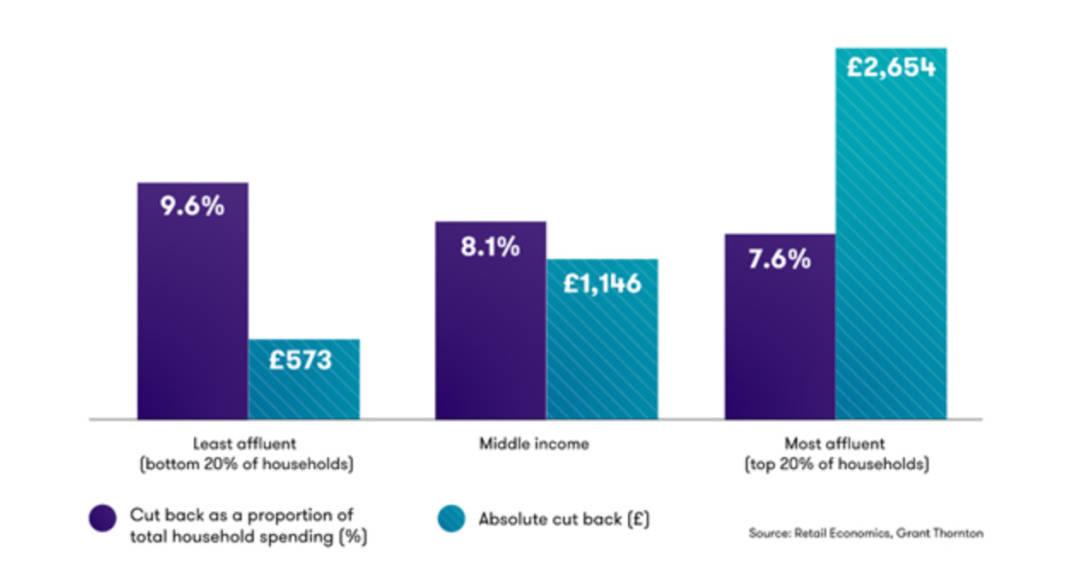 根据Grant Thornton and Retail Economics的最新研究表明,随着生活成本危机的蔓延,近90%的英国消费者计划在未来一年削减非必要开支,以抵消日常生活成本的急剧上升。41%的英国消费者预计当前生活水平的紧缩至少会在2023年底之前影响他们的消费习惯。