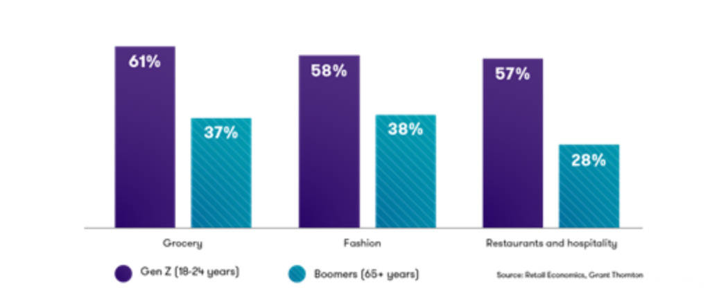 在非必需品中,服装和鞋类是消费者削减开支的重中之重。47%的英国家庭计划减少时尚支出,平均每个家庭预计将在时尚服饰和鞋履上削减137英镑,这占年度服饰和鞋履支出的11%。58%的Z世代(18-24岁)购物者计划减少购买时装,这一占比高于任何其他年龄段。76%的Z世代准备削减在其他领域的支出,这一指数比婴儿潮一代(24%)高3倍。
