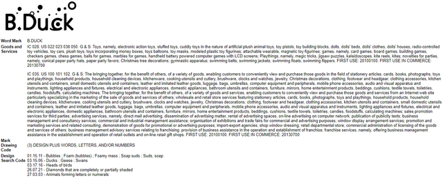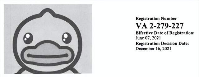 另外,B.Duck的形象已进行版权登记,产品、产品图片或包装上若是未经授权使用,存在极大的侵权风险。