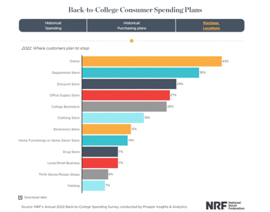 在美国零售联合会(NRF)针对7830名消费者的调研数据中,也透露了今年返校季的大热趋势:预计2022年美国整体返校购物市值将超过1100亿美元。