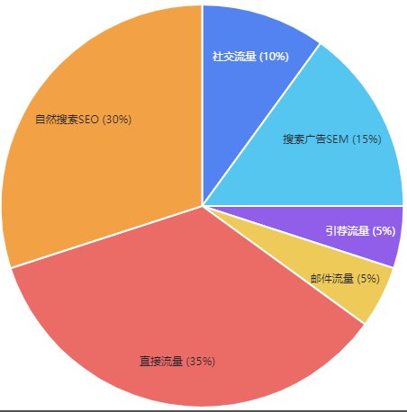 搜索流量:分为免费搜索流量(SEO)、付费搜索流量(SEM)