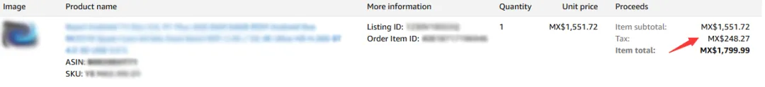 也要不少卖家关心墨西哥增值税是多少的,从截图中看来,按照税金除以订单金额计算出来,税率为13.8%。