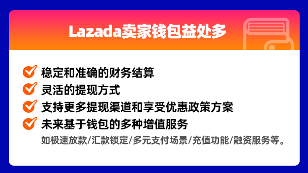 Lazada安全支付再度加码,平台即将上线升级版财务结算方式——Lazada Seller Wallet卖家钱包,商家激活钱包后即可一键实现稳定打款、灵活提现、提现优惠以及多种增值服务!