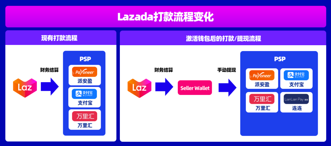 为了提升商家在 Lazada 平台收款管理的便捷性和安全性,在新加坡金管局新出台的“支付服务服法案”要求下,Lazada与国际支付宝合作推出升级版财务结算方式“Lazada Seller Wallet卖家钱包”功能,并将在4月1号正式上线!所有Lazada跨境商家在钱包上线后,需尽快完成钱包激活绑定动作,避免因超期而影响店铺后续经营。(具体截止日期请留意平台通知)