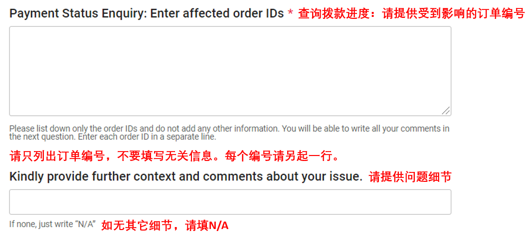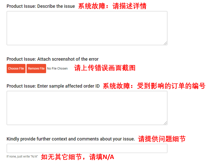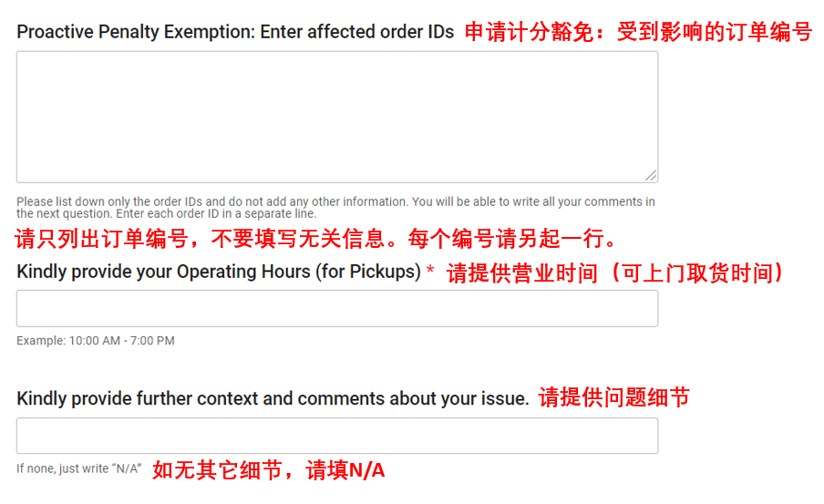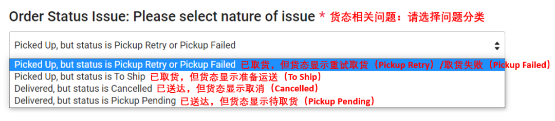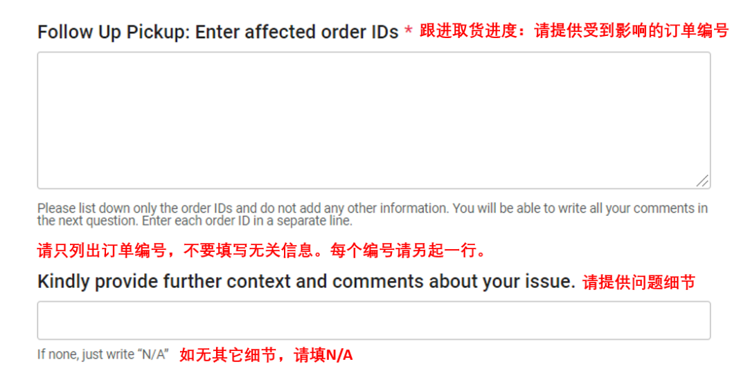 ⚠ 反馈问题前,请先确认取货、送货、退货时间表。您只有在物流延误取货、送货、退货时才需填表单反馈。