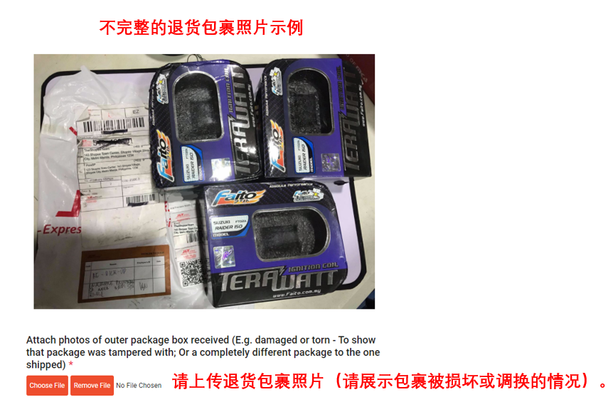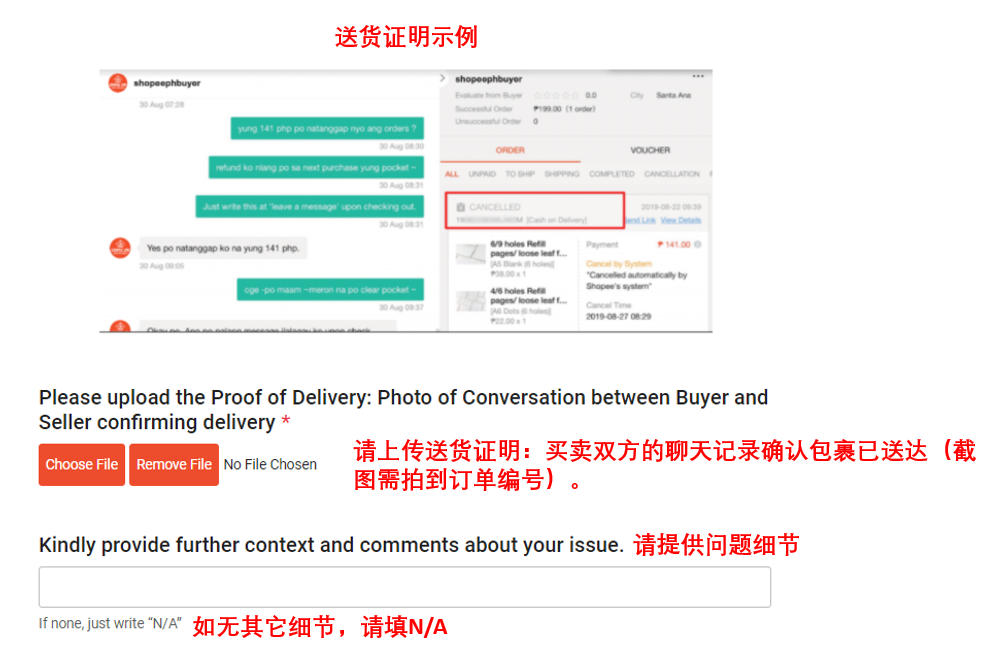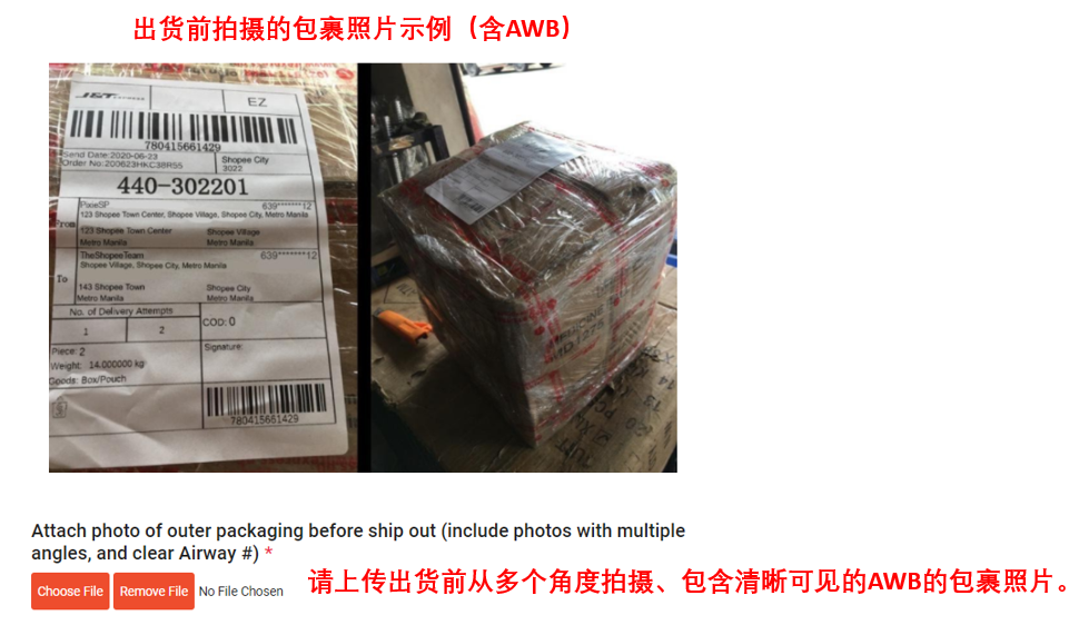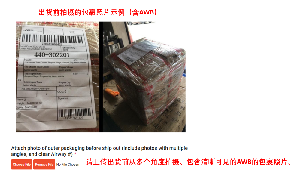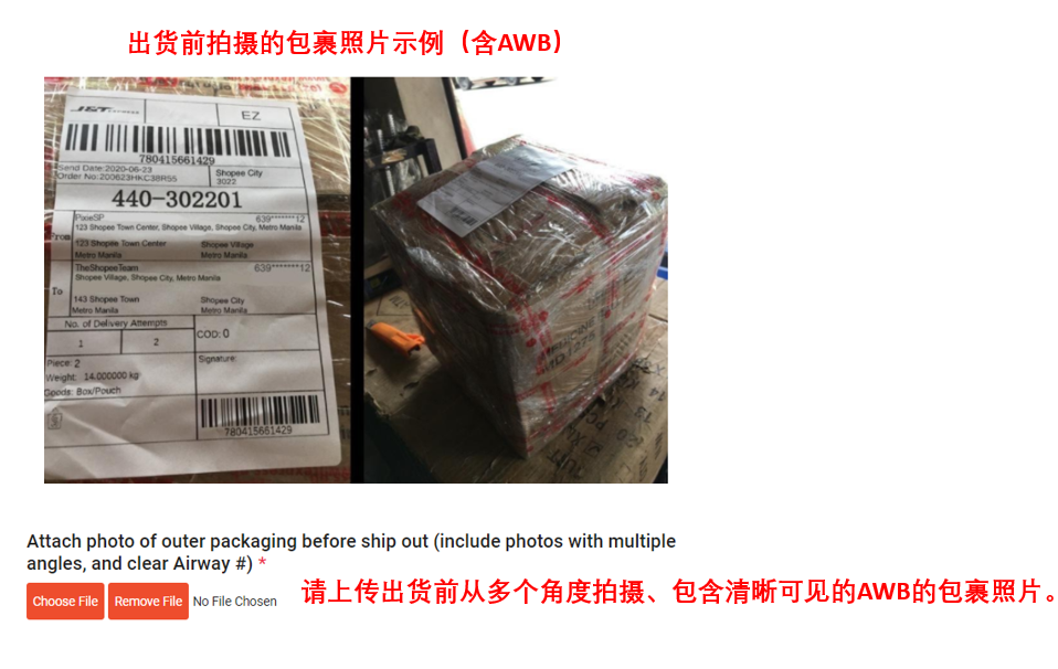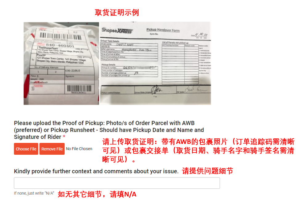 请确保您上传的AWB上的追踪码与您提供的订单编号能对得上。每张订单都需有相对应的取货证明。