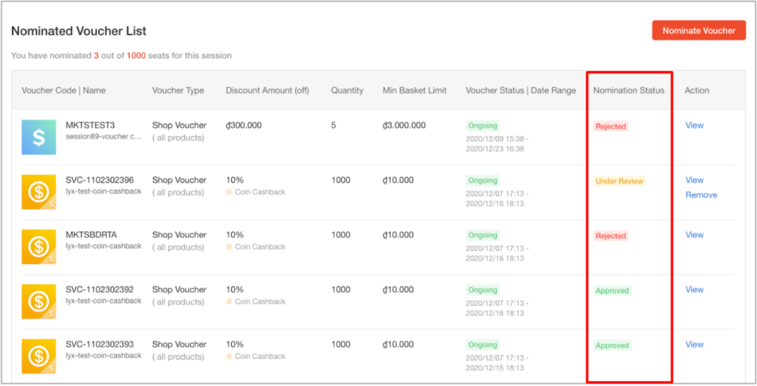 ? 您可以在提名状态(Nomination Status)查看优惠卷审核结果。
