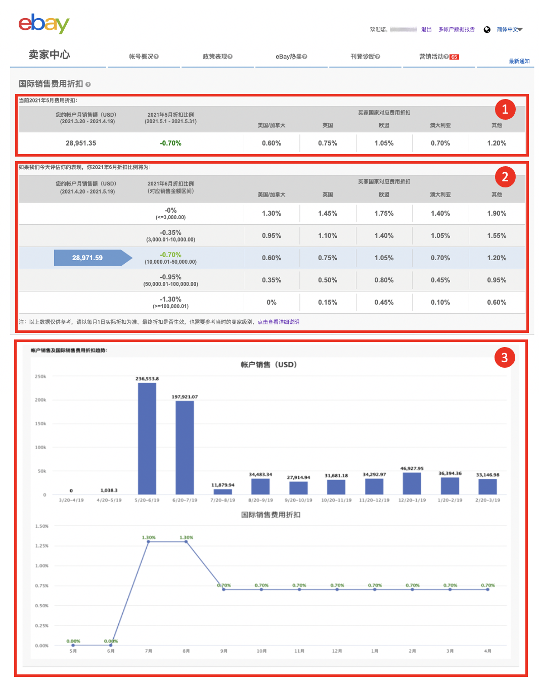 这里详细介绍eBay管理支付服务框架下“基于销售额的国际销售费用折扣”以及如何查看各个帐户的“国际销售费用折扣报告”。
