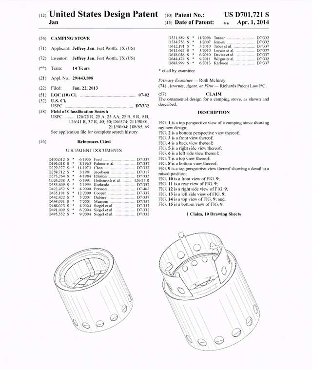 另外,品牌方早在2014年就给产品申请了外观专利: