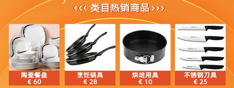 厨房需多了解西班牙日常家居生活以及饮食习惯,给消费者提供越符合当地市场的产品,就能打造更多的爆品!另外抓住节庆销量爆发节点,提前备货,如圣诞刀叉套装礼盒,圣诞餐盘套装礼盒,圣诞烘焙模具等。总的西班牙厨房选品方向可以参考下面品类关键词: