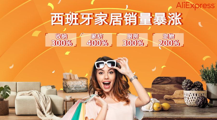 2021上半年,速卖通西班牙家居品类销量实现高速增长,单月最高增长率超260%。其中增速排名靠前的细分类目有家纺400%+,收纳300%+,厨房300%+,宠物200%+。