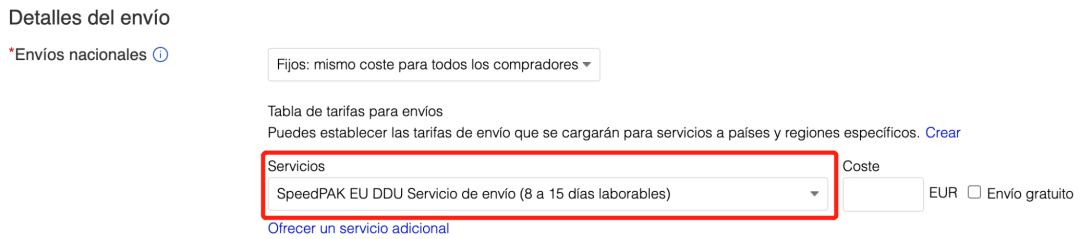 eBay西班牙站点SpeedPAK EU DDU物流选项: