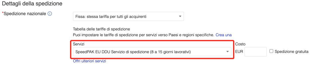 eBay意大利站点SpeedPAK EU DDU物流选项: