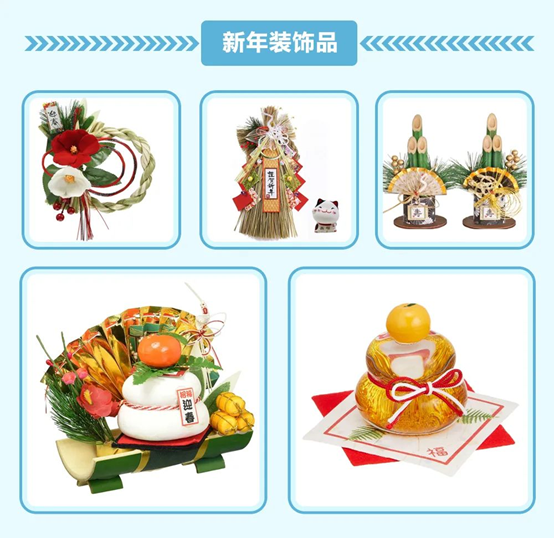 使用场景:注连绳用在神社/家门口;门松用在家门口两侧/玄关;镜饼用于家中装饰。