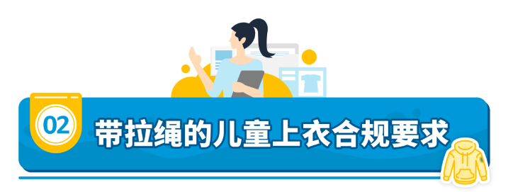 亚马逊要求所有2T至16(加大号)码、腰部和底边带拉绳的其他儿童上衣均应经过检测,并且符合下列特定法规和标准要求:
