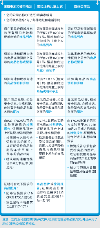 您可通过下方表格,详细了解对应品类商品所需提交的合规文件信息: