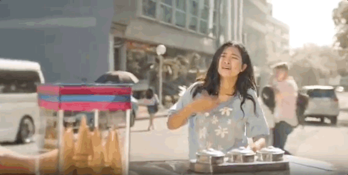 艳阳下,一位长发女士走在街头,问街头小贩有没有什么能降温的东西,小贩搬出了一台Carrier小型空调扇,吹到强劲凉风的女士立马从满头大汗变得清爽舒适。