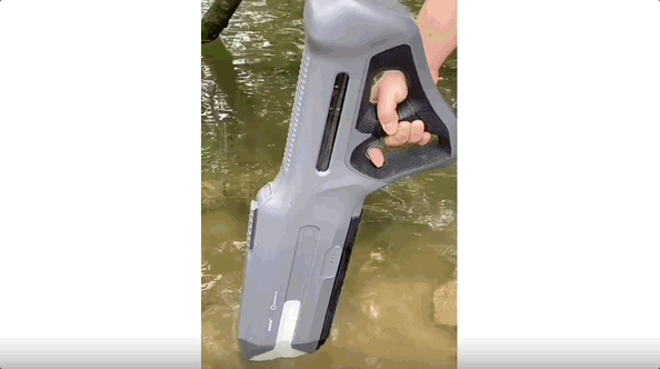 不同于平时所见的五彩斑斓的儿童水枪,这款水枪的外观和喷射方式非常炫酷,一看就是给大孩子准备的。虽然展现方式略显单一,只是拿着水枪吸水再喷水,但也直观地展示出了商品自动取水和射程远的优势。