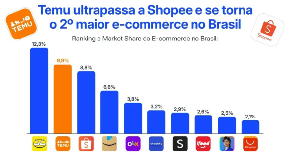 Conversion数据证实,2025年4月,Temu以9.9%流量份额反超Shopee,稳坐巴西第二大电商宝座。单月点击量激增5600万次,环比增长25.8%,推动巴西进口商品访问量同比飙升132%。自2024年6月进入巴西后,Temu仅用10个月跻身前五,次年4月登顶第二,下载量力压美客多。